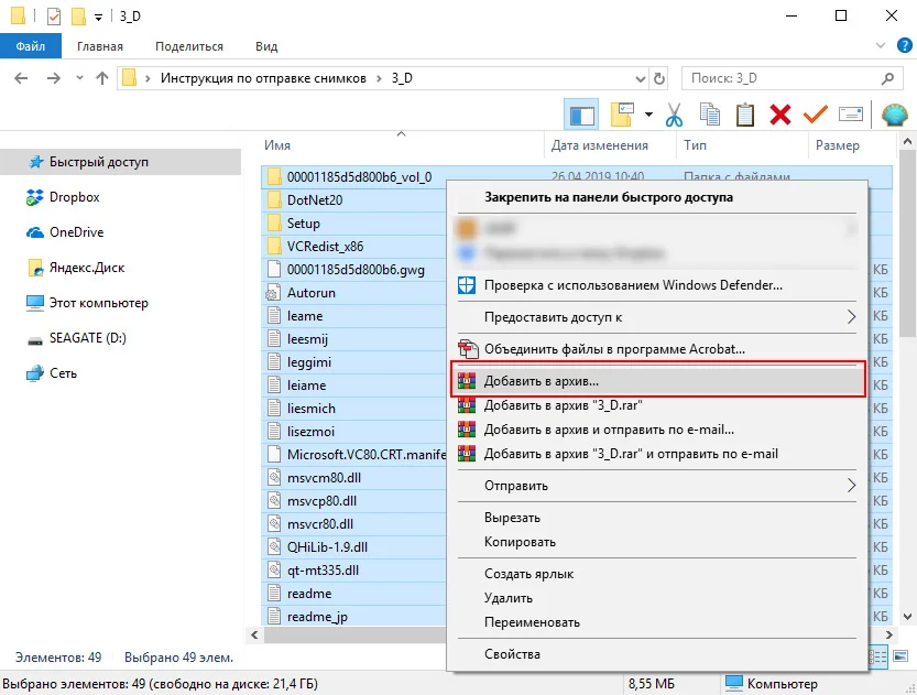 Usually, the 3D scan (CT) is provided to the patient on a CD with folders and files. These files and folders must be combined into one archive. To do this, you will need the WinRAR program. If you do not have it installed, you can download it from this link https://www.rarlab.com/rar/winrar-x32-700b3.exe and install it.