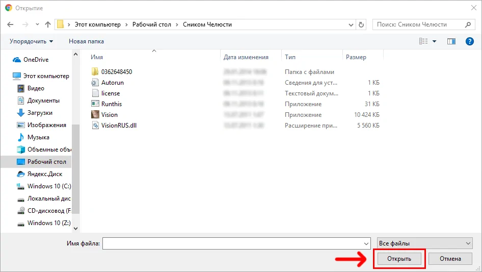 3) The Windows File Explorer window will open. Navigate to the folder where the prepared archive with your scan is stored, select it, and click “Open”. (See above for instructions on how to create an archive.)