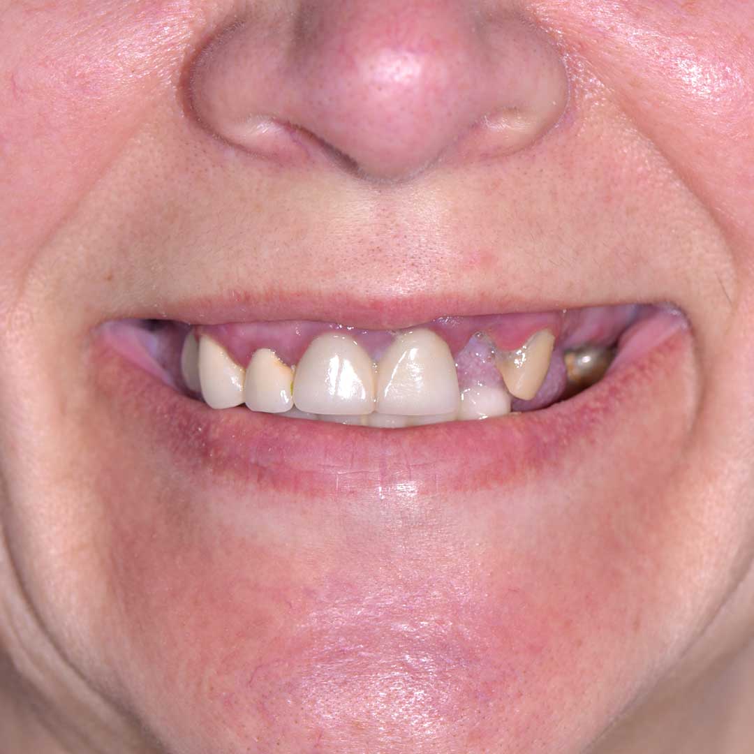 На первичной консультации была проведена диагностика, оценено состояние полости рта и предложен оптимальный план лечения. Основной задачей было — восстановление функции и эстетики.