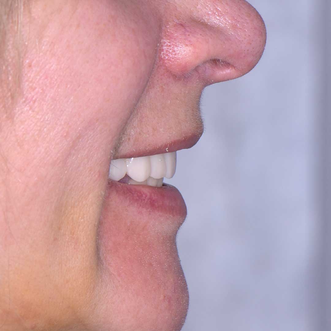 Через 3 дня после операции проведена примерка протеза на верхнюю челюсть. На этом этапе были уточнены параметры прикуса, форма и положение зубов, а также эстетические характеристики будущей улыбки.